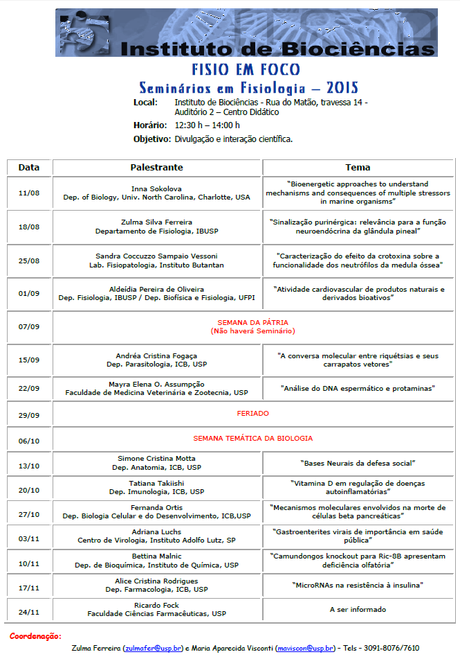 Local: Auditório 2 - Centro Didático - IB/USP