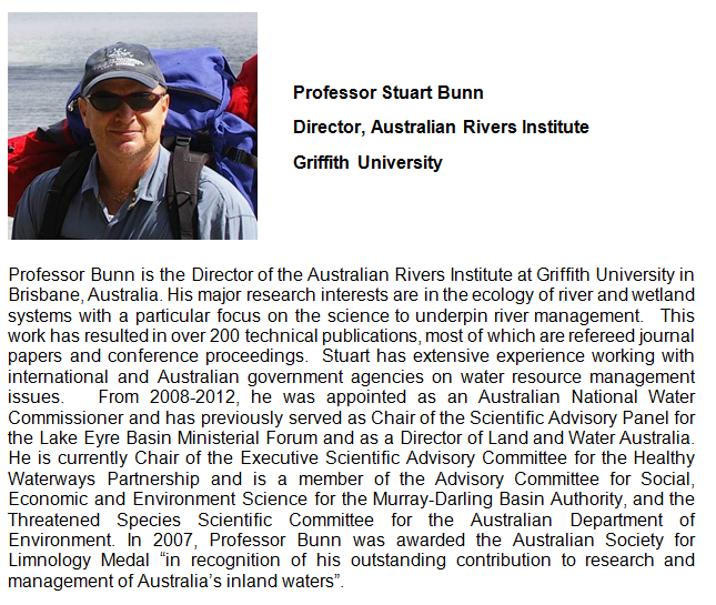 Palestrante: Prof. Stuart Bunn - Director of the Australian Rivers Institute -Griffith University - Austrália