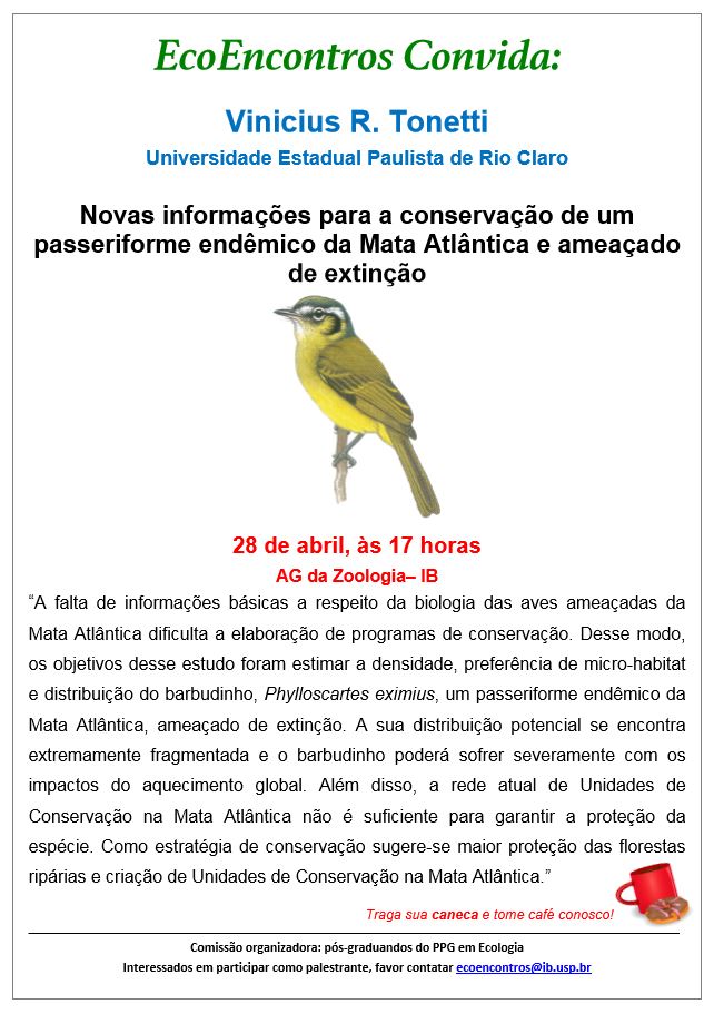 Título: Novas informações para a conservação de um passeriforme endêmico da Mata Atlântica e ameaçado de extinção