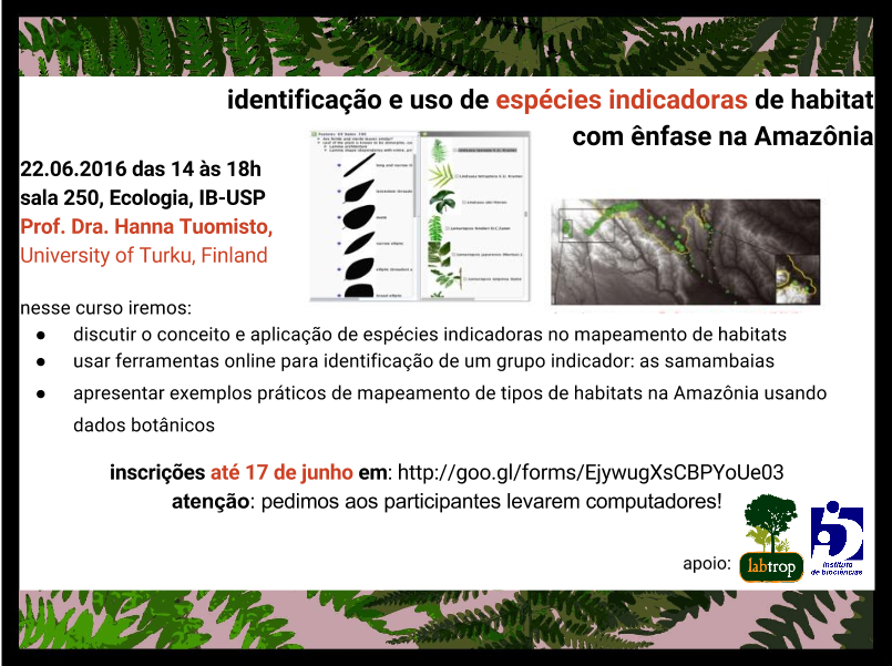 Local: sala 250, Ecologia, IB/USP