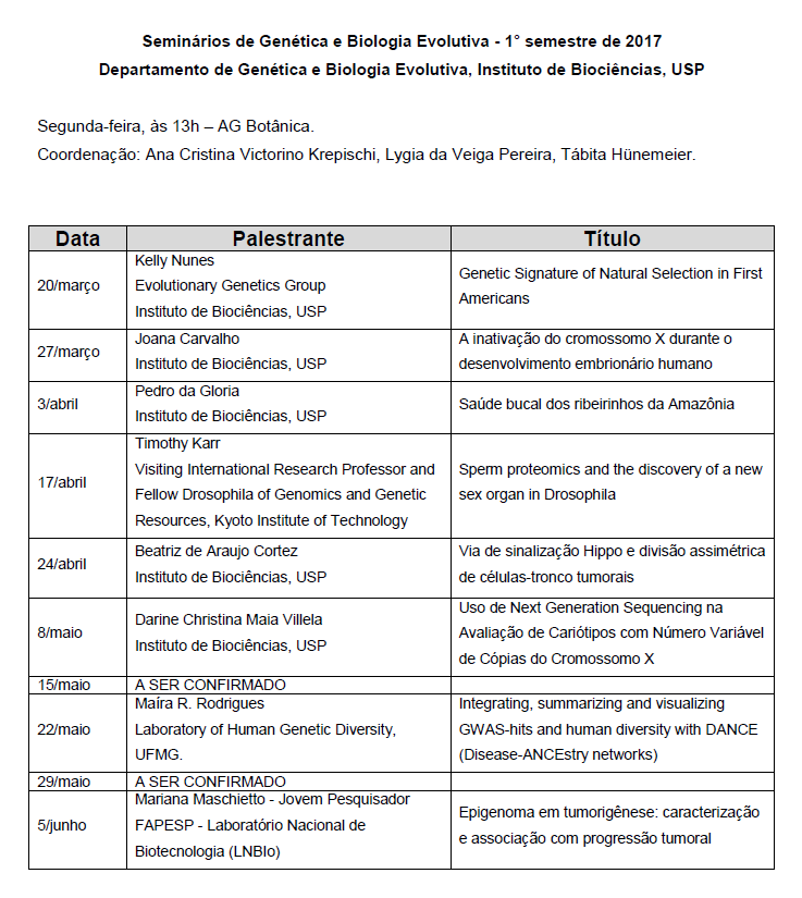 Palestrante: Laurel Hiebert - Instituto de Biociências, USP