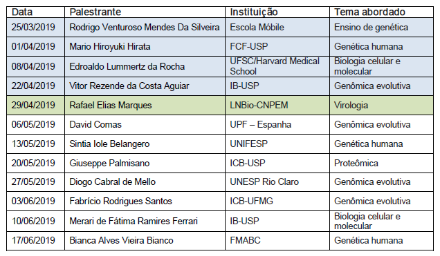 Seminários do Departamento de Genética e Biologia Evolutiva