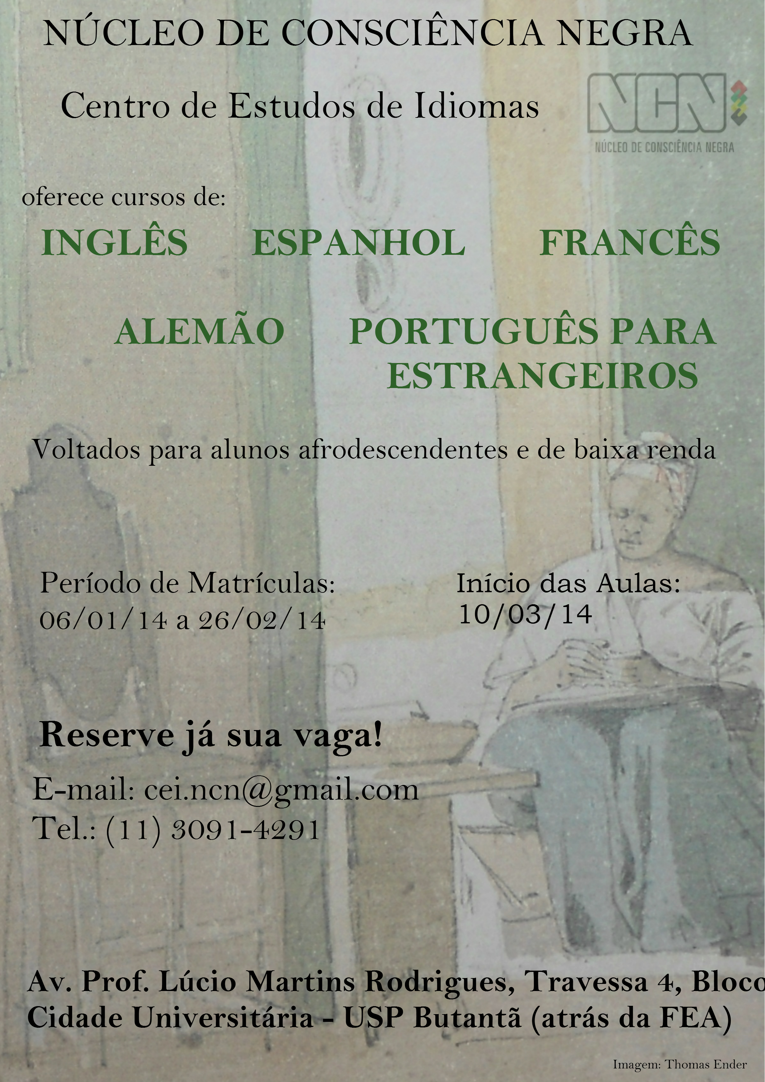 O Centro de Estudo de Idiomas do Núcleo de Consciência Negra na USP oferece cursos de: